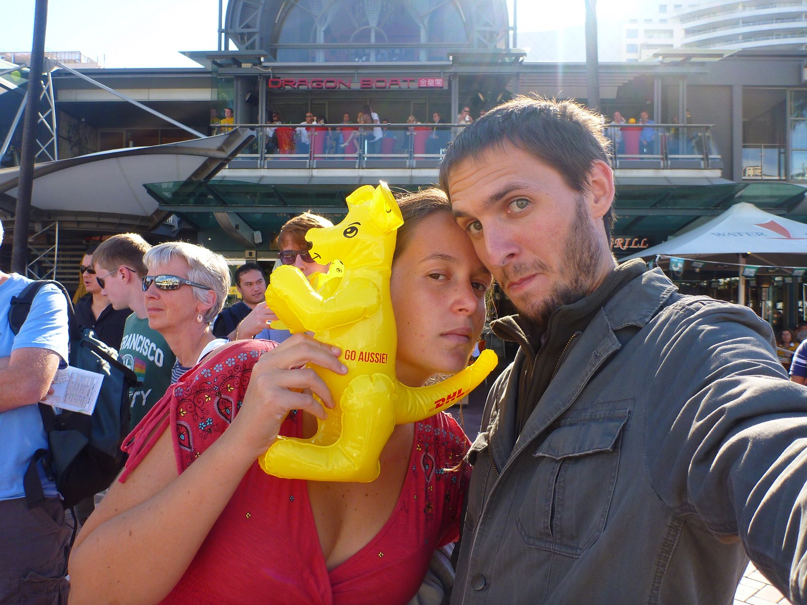 Ce week-end fut chargé en émotions sportives : la France a battu hier l'Angleterre, et l'Australie a battu l'Afrique du Sud ce dimanche. En bon Français que nous sommes, nous avons assisté à ce premier match dans la salle commune de l'Auberge de Jeunesse, pleine à craquer de Français et d'Anglais. Quant au match de l'Australie, nous sommes allés nous fondre dans la masse devant un écran géant sur le port de Sydney, où on nous a distribué de quoi supporter fièrement ce pays d'accueil : un kangourou gonflable ! Enfin nous avons rejoint l'Auberge pour regarder en spectateur impartial le match de la NZ qui s'est imposée face aux Argentins.