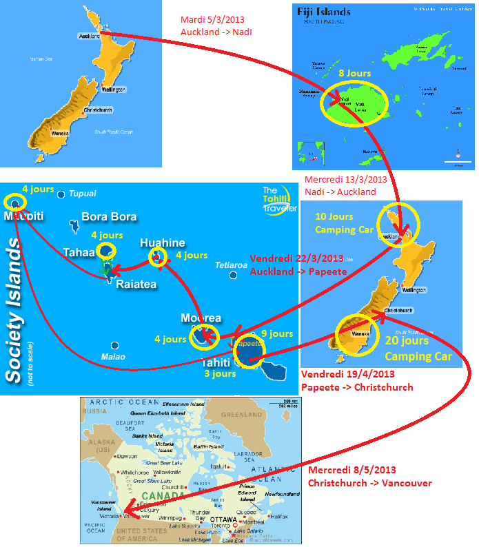 Voila à quoi nous dépensons notre temps libre du moment : planifier la suite de notre voyage! Je vous laisse donc consulter notre plan de route du début d'année prochaine, qui nous mènera, comme vous le verrez, à Fidji, Tahiti, et Vancouver. Tous les billets sont pris, ne reste plus qu'à réserver nos hôtels et moyens de transports terrestres... Nous sommes donc partis pour travailler dur jusqu'au 4 Mars prochain, pour nous offrir un beau tour des iles du pacifique ! Ensuite direction Canada, pour une durée indéterminée pour le moment, étant en attente de visa de travail, relativement difficile à obtenir... Affaire à suivre ! (Lien direct vers notre plan de route : ICI ).