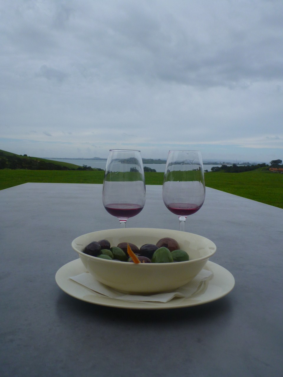 Après 1 mois passé sur l'ile aux vignobles de Nouvelle-Zélande, il était temps d'aller gouter ce fameux vin ! Nous avons donc profité de la présence de Clem/Branky qui a passé 4 nuits chez nous, pour aller nous faire offrir la dégustation de 4 vins avec olives grecques à Cable Bay (lieu de travail d'Antoine), et pour nous offrir la dégustation de 10 vins chez les concurrents : Mudbrick. Dans la gallery, quelques photos des vues prises sur les terrasses des caveaux.