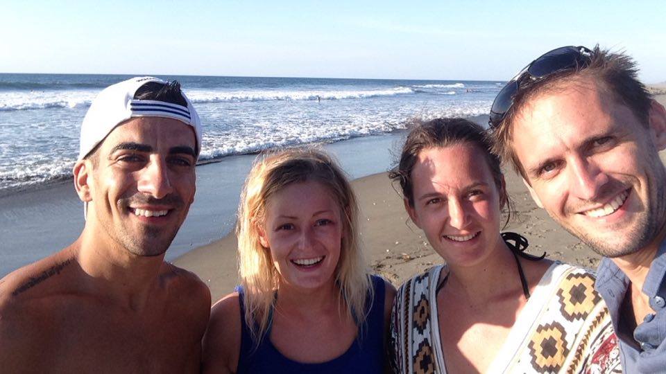 Lundi, nous sommes allés à la plage en bus. Située à 17 kms de Leon, cette plage désertique nous a bien rafraichi. Un peu de sport tout de même, puisque nous avons re-loué une planche de surf, pour profiter des belles vagues. Nous n'avions pas pris l'appareil photo, voici donc un selfie pris sur le téléphone de nos amis Ben et Tianna.