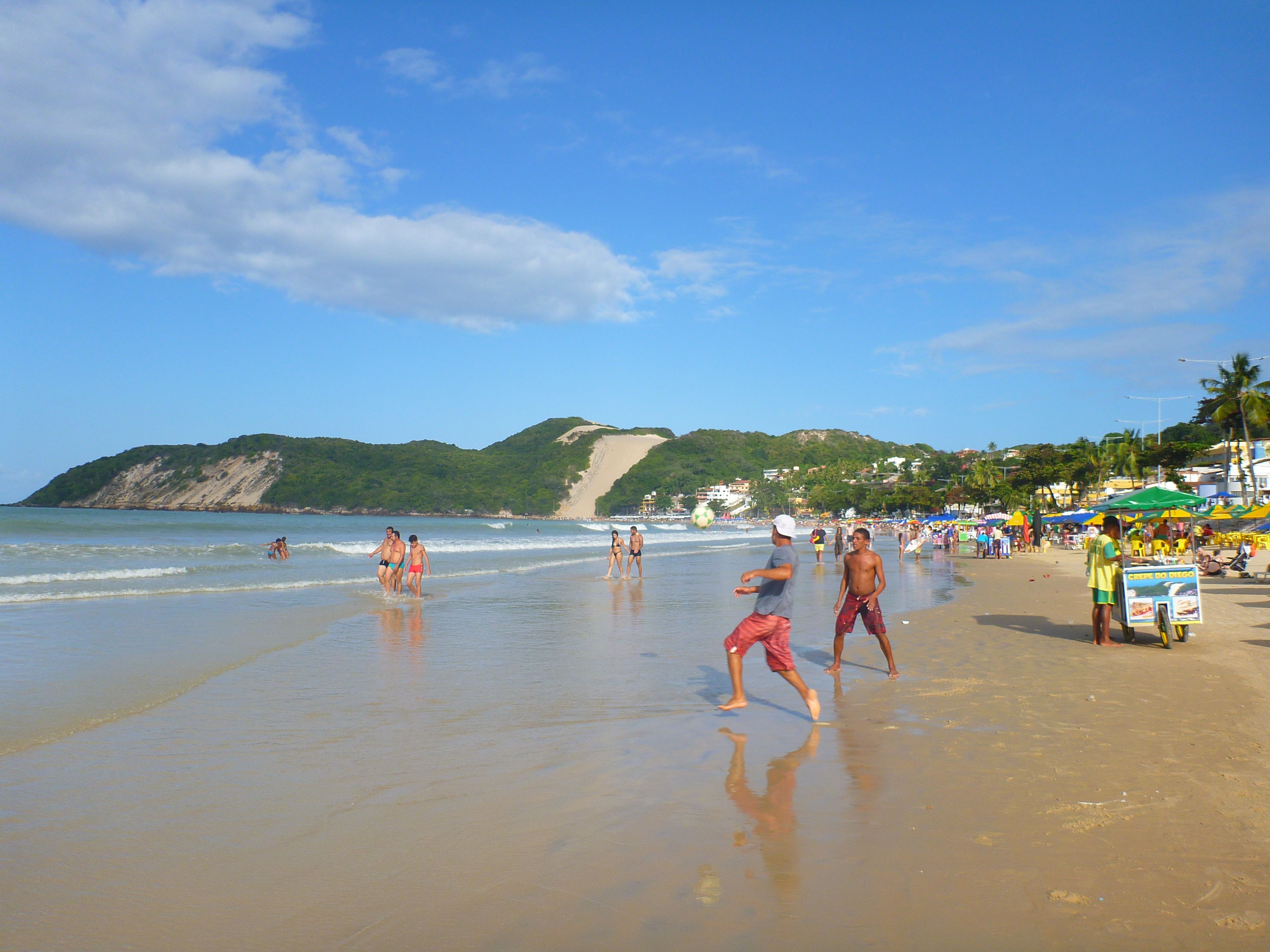 2h de bus, et nous voici de passage dans la capitale d’état : Natal. Cette ville n'a que peu d'attraits, si ce n'est qu'elle est bordée par des dunes de sable immenses en bord de mer. Elle fut un temps considérée comme la ville la moins dangereuse du Brésil, mais la situation s'est a priori détériorée depuis une dizaine d'années. A tel point que nos hôtes AirBnb pour 2 nuits, nous ont donné quelques recommandations : vérifier qu'il n'y a personne dans la rue en sortant de la maison, vérifier que personne ne nous suit en rentrant à la maison sinon continuer notre chemin, ne pas transporter d'objets de valeur ni de montre au poignet, prendre la rue vers la droite plutôt que vers la gauche... Bref, quelques consignes, sachant que leur voisine s'est fait séquestrer pour vol 2 jours plus tôt dans sa maison, par des brigands l'ayant suivi chez elle lorsqu'elle rentrait des courses... Ajouter à ça que dans ce quartier résidentiel tranquille, les maisons et leur jardin sont entourés de murs de 3m de haut, rehaussés de barbelés et barrières électriques... Nous avons tout de même mis le nez dehors pour diner au resto samedi et dimanche soir, et nous promener sur la digue touristique, un dimanche après-midi bien ensoleillé !
