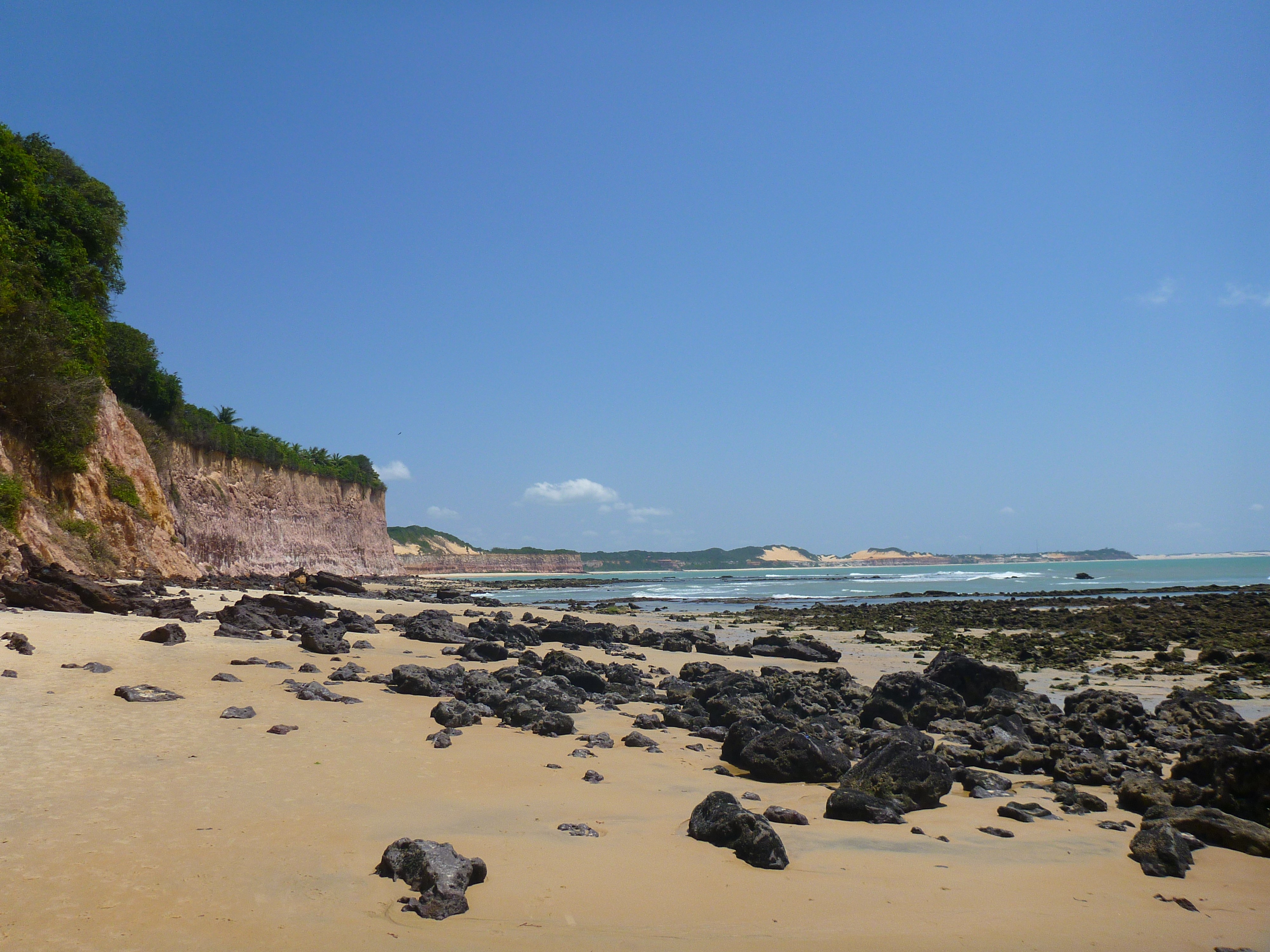 Après être repartis de Recife mercredi, nous avons pris la direction de Pipa, à 4h de bus au Nord. D'un petit village de pêcheurs, Pipa est devenue une station balnéaire réputée pour la beauté de ses plages, la faune marine et les spots de surf. Nous y restons 3 nuits en AirBnb, un peu en retrait de l'effervescence touristique de la rue principale. Mais durant notre séjour ici, nous avons visité le Sanctuaire Ecologique, forêt tropicale aux abords de la mer avec ses marmousets et ses différents points du vue sur le littoral, dont le "Mirador des tortues", duquel on peut observer les tortues festoyer dans l'eau à marée haute (gallery P1290356). Vendredi, nous avons été sur la plage de la "Baie des Dauphins", accessible uniquement à marée basse (tout le littoral est au pied de falaises), et qui porte bien son nom puisque les dauphins viennent jusque dans les pieds des baigneurs jouer avec les vagues (gallery P1290375). Bref, un séjour bien relaxant, avant de reprendre notre route vers le Nord.