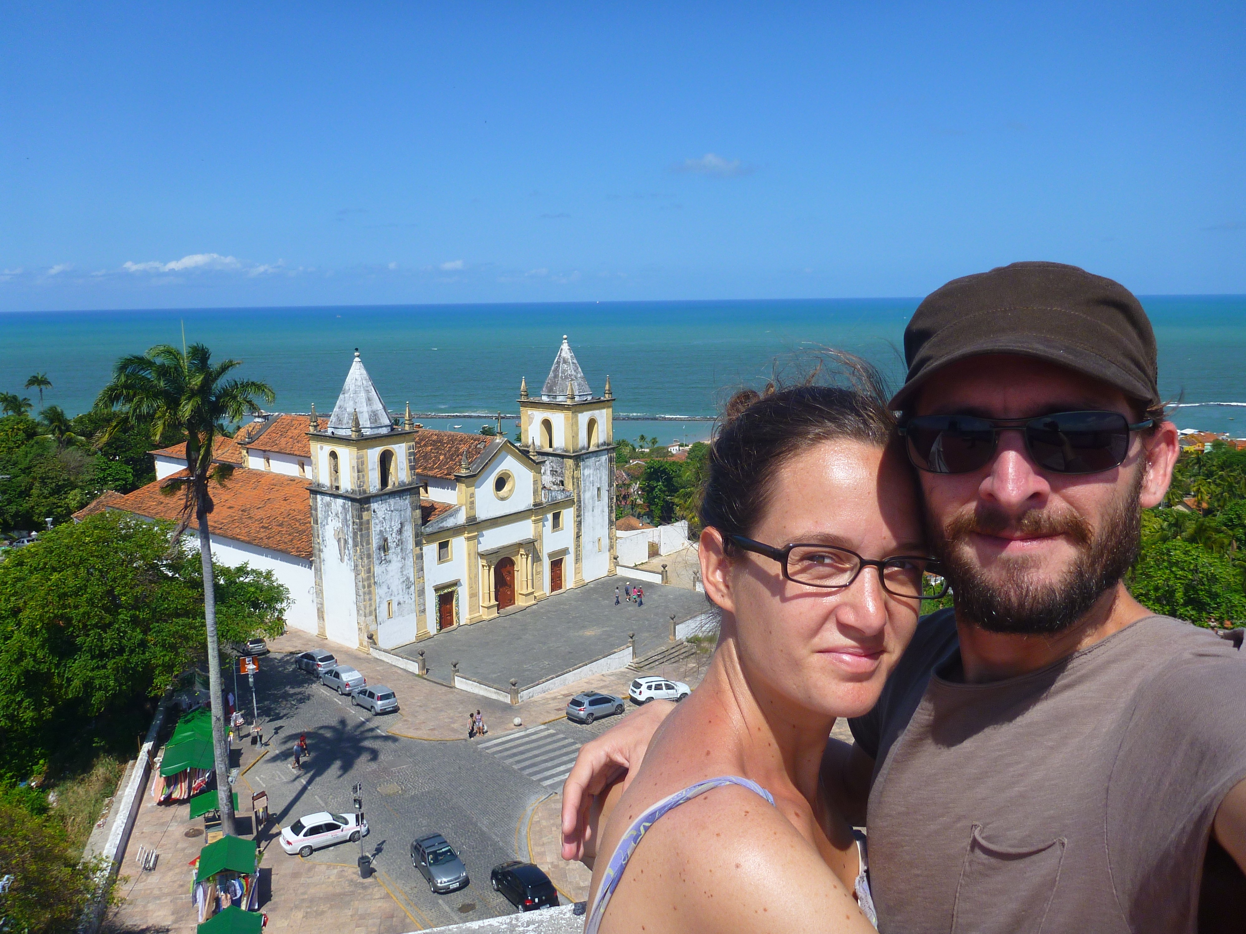 Fête des pères, anniversaire de Julie, 7 ans de vie commune... Dimanche 14 Août se devait d'être fêté ici au Brésil. Nous nous sommes pour cela rendus dans la petite ville d'Olinda, en banlieue de Recife. Cette ville est l'une des plus vieilles cités Brésiliennes (1535) et fut pendant longtemps la capitale du Pernambouc. Aujourd'hui classée à l'UNESCO, son centre-ville avec ses maisons colorées mérite le détour. Au sommet d'une colline, on peut également pour 2€ emprunter l'ascenseur qui mène à la "plus belle vue" des environs. Mais c'est aussi pour un restaurant de grande renommée locale que nous sommes allés nous aventurer vers là-bas : La Oficina do Sabor. En ce jour de fête des pères, on nous a fait patienter 10min avec un cocktail offert pour avoir une table avec vue. Au menu, après une entrée plutôt banale, nous avons choisi une spécialité à partager : le potiron farci aux crevettes et homard, sauce mangue, accompagné de riz coco. Une réussite !