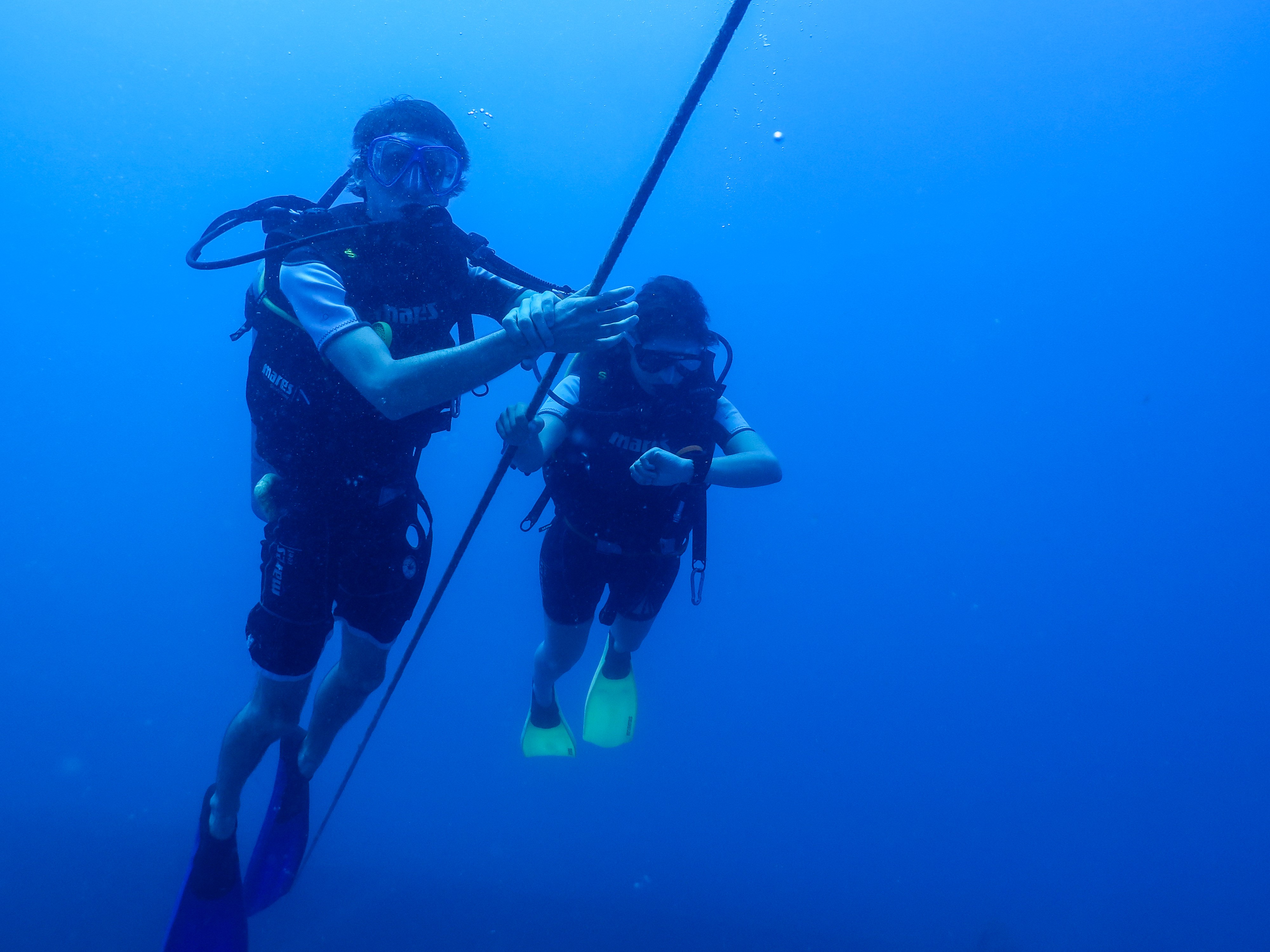 Lundi, nous avons loué une voiture pour 2 jours, pour nous rendre au Sud de Recife, visiter des plages de renommée, telles Porto de Galinhas, ou Praia Carneiros. Mais arrivés à Porto de Galinhas, nous nous intéressons par hasard de plus près à l'un des 10 centres de plongée éparpillés dans la station balnéaire. C'est alors que nous rencontrons un Suisse, installé dans son club de plongé depuis 18 ans, qui nous explique les possibilités pour plonger dans le coin, en nous annonçant que son bateau est en "maintenance hivernale", mais qu'un autre club PADI est à quelques kilomètres de là. Nous allons voir, par curiosité, et nous apprenons que le lendemain est prévue une plongée dans l'une des 3 épaves des environs. En effet, tout le long de la côte, beaucoup d'épaves naturelles et artificielles reposent à différentes profondeurs, du galion du 17è siècle (ou ce qu'il en reste), aux navires plus récents en fin de vie, coulés pour une nouvelle aventure... Après une grande négociation de prix, nous finissons par accepter de plonger le lendemain. Mardi matin, 9h, le lieu de plongée est dévoilé au briefing : ça sera l'épave du Gonçalo Coelho, anciennement LSM119. Ce navire, originellement un navire Américain de transport de troupes lors de la deuxième guerre mondiale au Japon, fut revendu au Brésil où il fut utilisé comme transport de marchandises entre Natal et l'île de Fernando de Noronha. Arrivé en fin de vie, il fut coulé en 1999 pour devenir un exceptionnel site de plongée à 33m de profondeur. Nous avons donc plongé 2 fois sur l'épave, après avoir vu quelques dauphins en surface, pour de courtes durées, puisqu'à cette profondeur le temps est très limité. Mais nous avons pu visiter l'épave à l'avant et à l'arrière, et rencontré deux de ses habitants : les mérous géants (plus de 2m50!). Également sous l'eau, nous avons entendu le chant des baleines... Bref, une plongée hors du commun, qui nous a également permis de profiter du Resort dans lequel le club est situé, avec ses plages privées, piscines, et perroquets... Et pour une fois, nous avons des images de tout ça, grâce à la photographe professionnelle qui nous a accompagné tout du long.